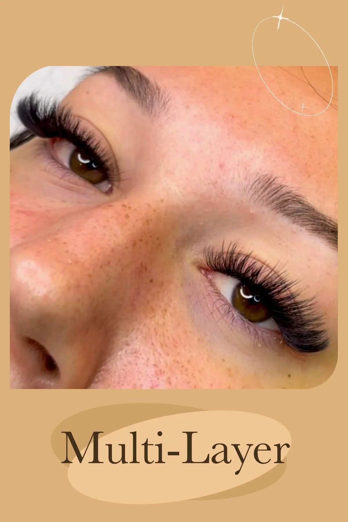 With varied lengths throughout, Multi-Layer Effect is an ultra-voluminous fluttery lash look. The pattern allows eyelid space to show through without sacrificing volume. This gives the wearer the freedom to create beautiful eyeshadow looks that aren’t masked by eyelash extensions. The extensions compliment all makeup looks perfectly. And if you are not into wearing eyeshadow, that’s fine! Our Multi-Layer lashes are all you need to make a statement anytime, anywhere.